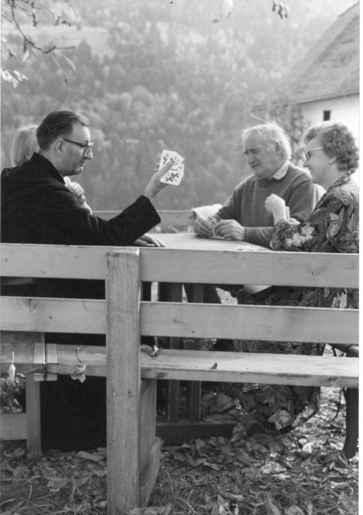 Er hät gern gredt, verzellt; und es hät immer Hand und Füess gha. Ganz drinine hät er aber nöd eifach la luege: Die Tüüfi hät mer müesse usegspüre. Erscht ganz i de letschte Täg im Spital han ich törfe z’innerschtine gseh, woner mir aavertrout hät: weisch, öises Vreni – was wär ich gsi ohni öises Vreni.