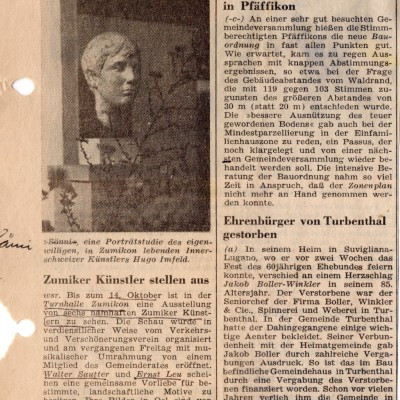 Zeitungsartikel zur Ausstellung Hugo Imfeld bei ZSA
