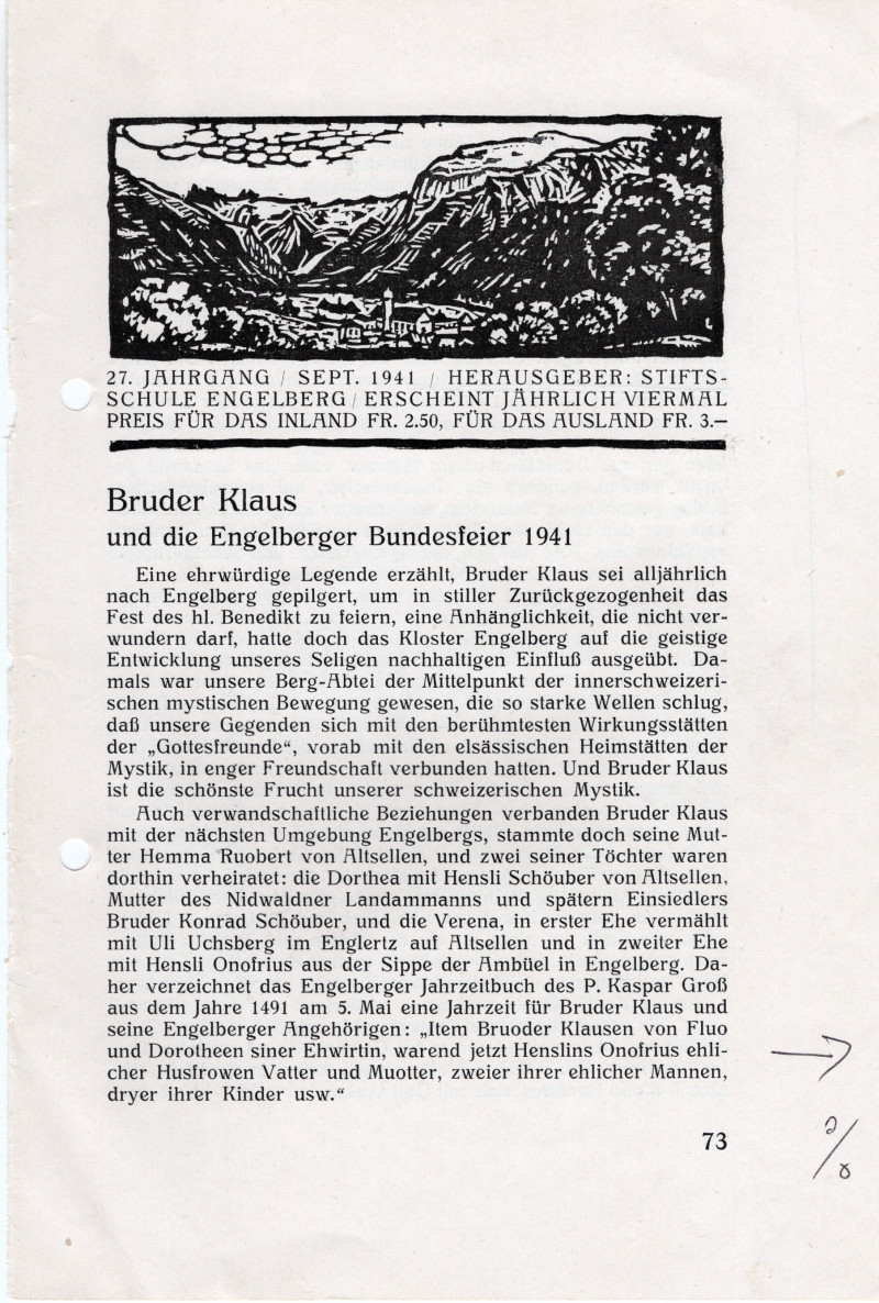 Bruder Klaus und die Engelberger Bundesfeier, 1941