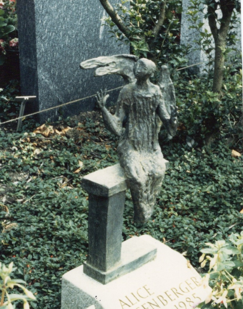 Das Grab Alice Eggenberger, Friedhof Rehalp mit dem klatschenden Engel als Grabfigur ist abgeräumt.